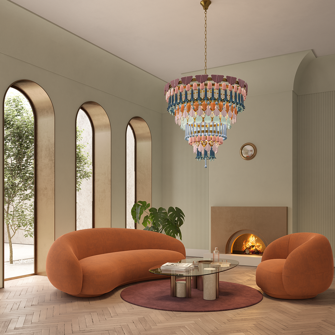Cette pièce maîtresse qu’elle soit sculpturale, chromée, laquée ou textile, agit comme un point d’ancrage visuel. Elle redistribue le regard, hiérarchise les volumes, et impose une lecture claire du lieu.