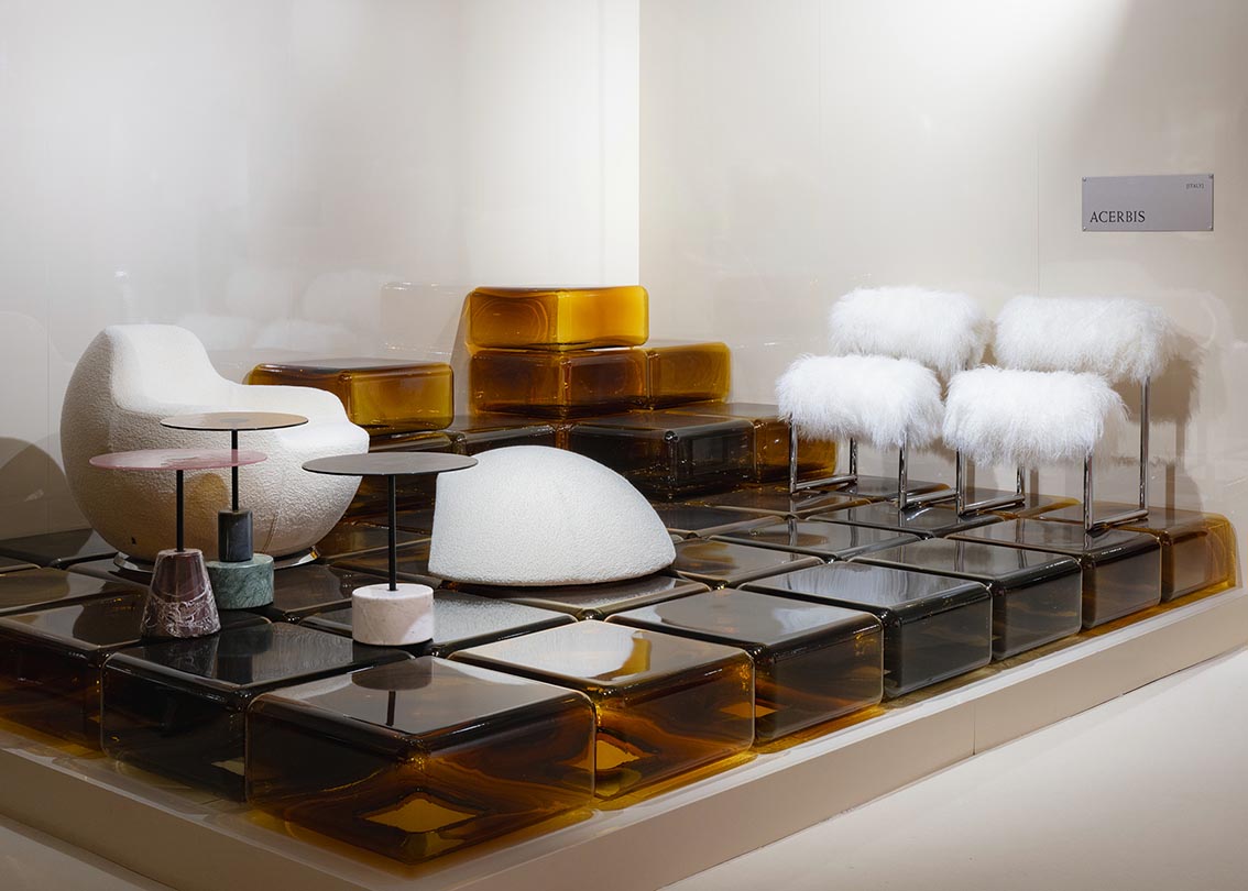 Pour la première fois, Acerbis participe au salon parisien Matter & Shape, affirmant une vision où patrimoine et innovation se répondent avec élégance. La scénographie, signée par les directeurs artistiques Francesco Meda et David Lopez Quincoces, met en scène un dialogue subtil de contrastes et de matières.