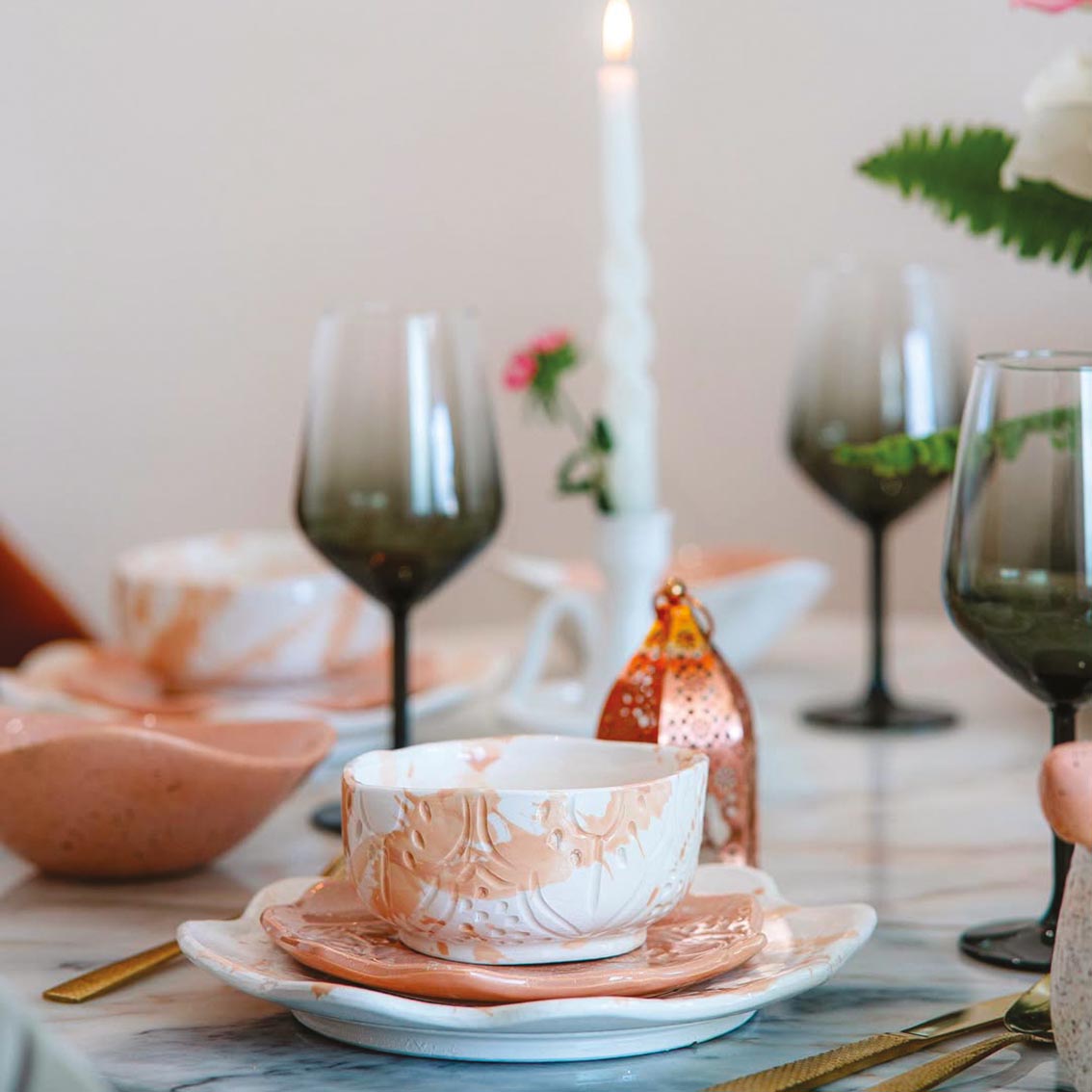Dans les coutumes marocaines, la vaisselle rythme les séquences du repas : offrir, partager, transmettre. Mama Tifa transforme cette logique en palettes chromatiques où chaque pièce est une mesure de convivialité. La fête se matérialise dans la succession de bols et d’assiettes, organisant l’abondance et la mémoire collective.