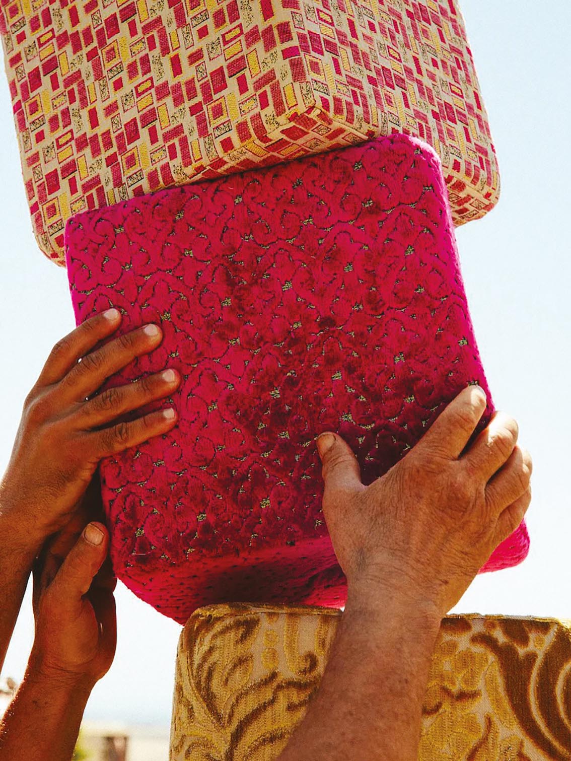 Le tissage marocain a toujours accompagné les moments de passage : tapis déroulés pour l’accueil, étoffes portées comme capes cérémonielles, matières posées comme frontières symboliques. Artisan Project réactive cette fonction du textile comme enveloppe rituelle. L’artisanat devient ici signe de statut et de continuité culturelle, rappelant que la fête se construit autant par ce que l’on expose que par ce que l’on partage.