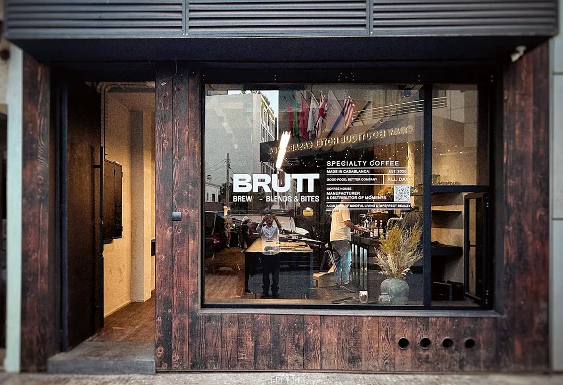 Nouveau café-brunch signé Mehdi Berrada et Elements Lab, BRUTT introduit une esthétique brute : béton texturé, lignes nettes, lumière tubulaire. Une atmosphère affirmée qui renouvelle l’expérience café dans la ville. @brutt.cafe