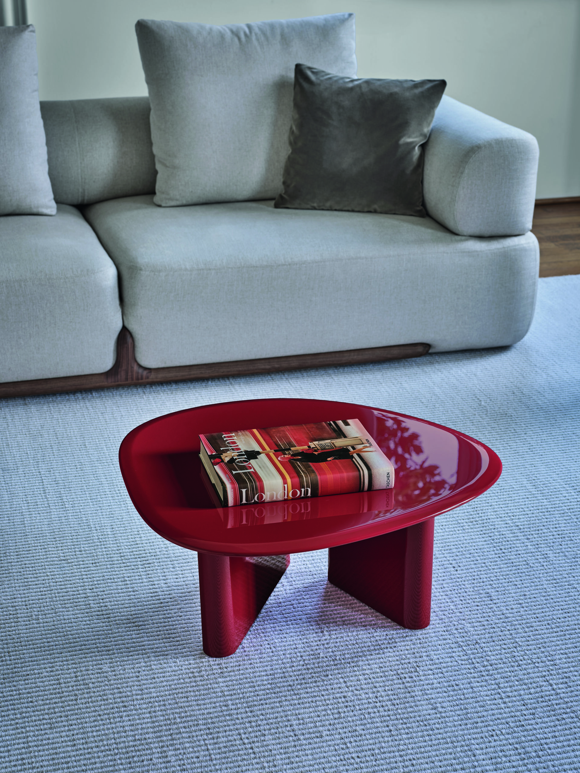 Ce qui distingue cette série ? Ses nouvelles finitions laquées « brillo » aux reflets profonds : deep brown, greige et rouge brun. Des couleurs intenses et satinées qui subliment la pureté des lignes et renforcent la présence graphique des pièces dans l’espace.