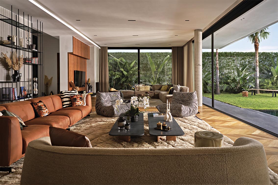 Dans cette maison, tout repose sur une économie maîtrisée : économie de moyens, économie d’effets, économie de signes. La pierre, le bois, le béton, le cuir – choisis pour leur densité, leur texture et leur résonance architecturale – produisent un équilibre sensible, sans besoin d’ajout. La lumière naturelle module l’ensemble avec retenue : orientée, cadrée, réfléchie. Meryem Tazi établit ici une forme d’architecture intérieure qui ne repose ni sur le confort visuel, ni sur l’accumulation d’objets signifiants, mais sur la qualité structurelle de chaque intervention. L’espace devient un lieu de stabilité. Il résiste aux temporalités courtes, aux tendances passagères, aux gestes spectaculaires. Il accueille, encadre, absorbe. Et ce qu’il restitue, c’est une sensation d’ordre et de calme qui relève autant de l’éthique du projet que de sa matérialité.