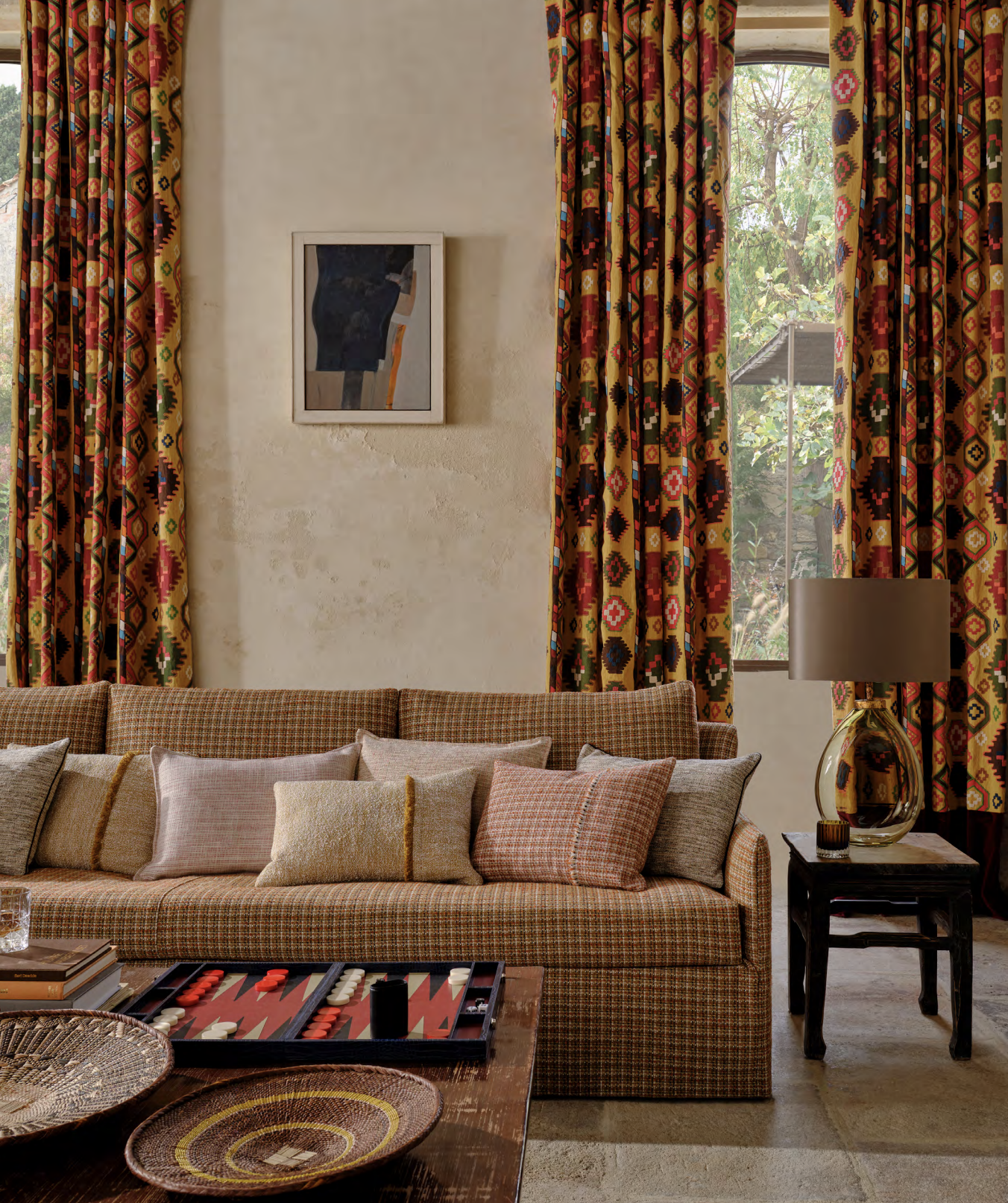 Pensée pour habiller aussi bien les assises que les rideaux ou les extérieurs, cette collection confirme le retour d’un textile décoratif assumé, où couleur, matière et motif participent pleinement à la mise en scène de l’espace.