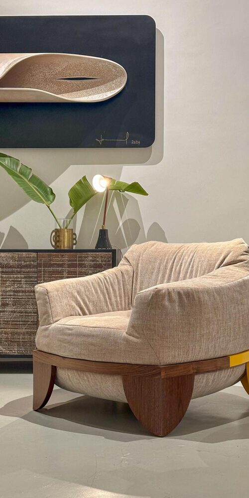 Boussa, l’assise qui enlace Ultra cosy et ample, Boussa est un fauteuil aux lignes généreuses qui puise son esthétique dans les mdamma, ces ceintures traditionnelles…