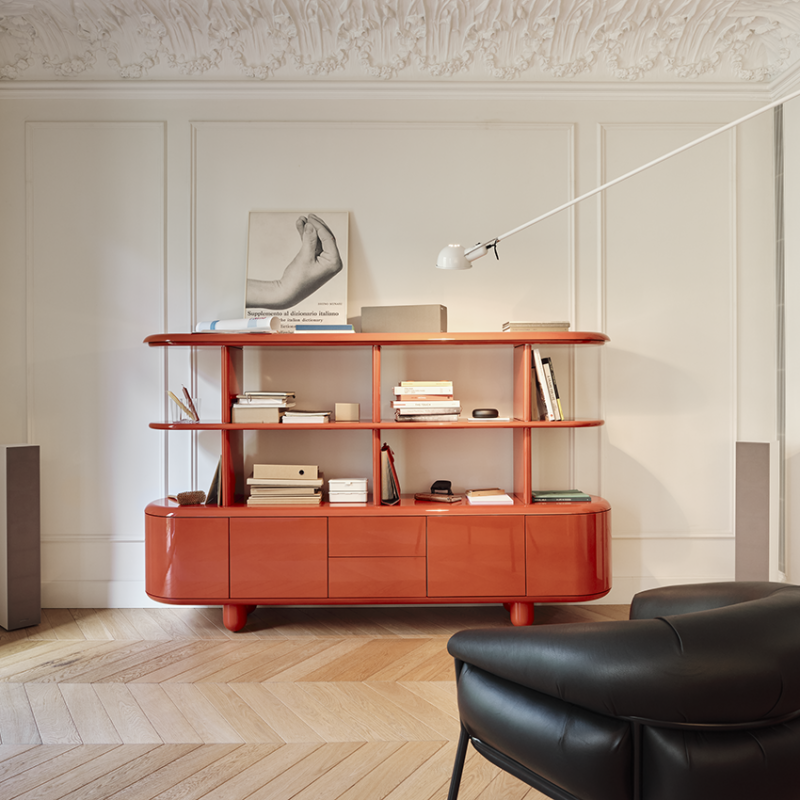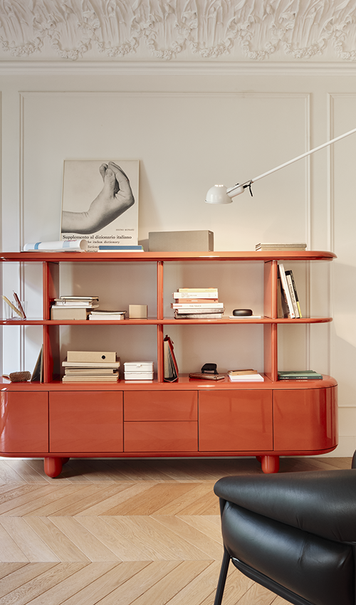 Bibliothèque contemporaine "EXPLORER XL" BD Barcelona Design Jaime Hayon Couleur assumée, équilibre spatial Les fenêtres du design Regards croisés Fenêtre sur cour x Déco Actuelle.…