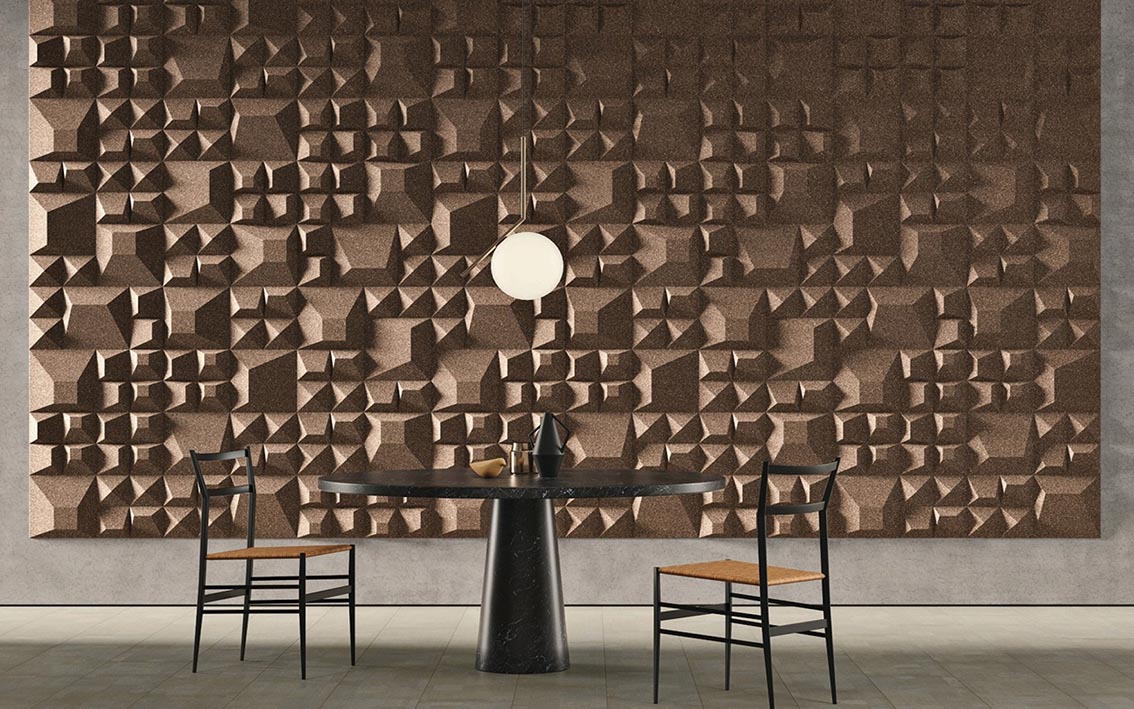 Depuis 1972, Granorte transforme les déchets de liège en revêtements muraux innovants. Les modules 3D FORMS, composés à 95% de liège naturel, allient design et durabilité. Modulaires et inspirés des carreaux et panneaux vintage, ils offrent des motifs tridimensionnels uniques, tout en améliorant le confort acoustique et thermique des espaces.