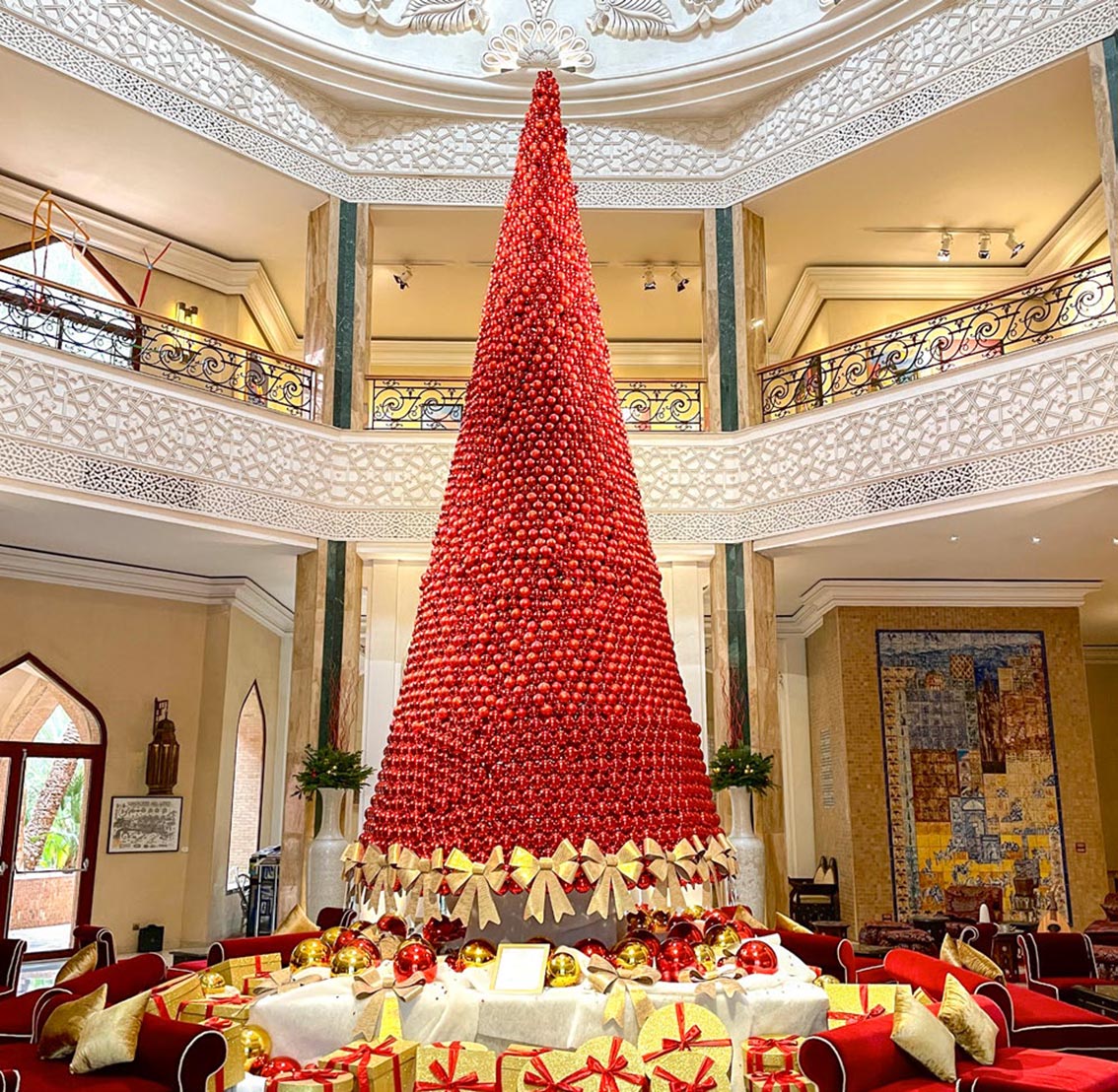 Première surprise : un sapin de Noël signé Balmain, majestueux et stylisé, trône au cœur du Palace, donnant le ton d’une saison placée sous le sceau du luxe à la française. En cuisine, la tradition s’unit à l’audace avec la bûche “Merhaba”, création exclusive du chef pâtissier, hommage savoureux à l’hospitalité locale. Datte fondante, fleur d’oranger, croustillant à la semoule : une interprétation moderne et sensorielle des saveurs marocaines.