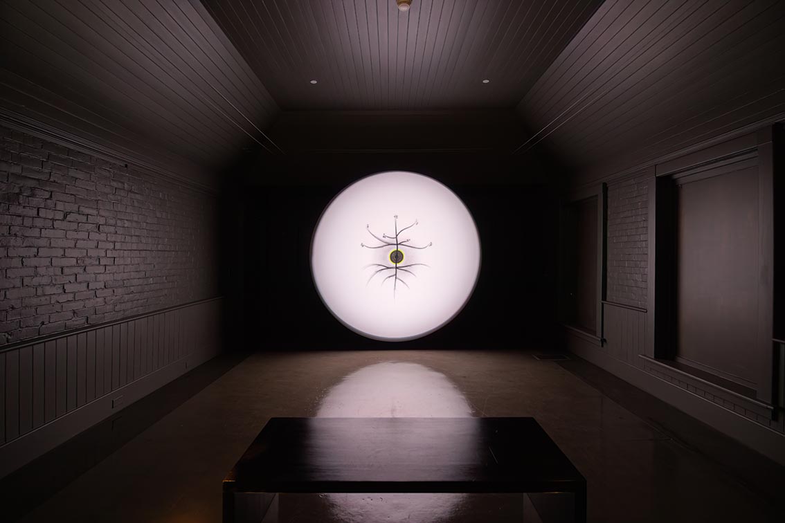 Présentée pour la première fois au musée sous la forme d’une installation composée de dix écrans suspendus, « Zahra-Khasla » fait éclore des fleurs imaginaires rythmées par la pulsation d’un point rouge. Chaque variation visuelle célèbre la beauté éphémère, dans un mouvement synchronisé évoquant respiration, contemplation et écoute intérieure.