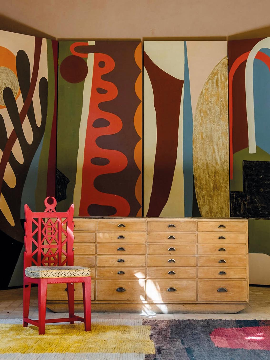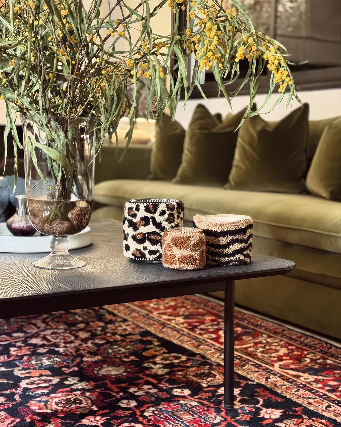 La composition prime sur l’objet. Matières, couleurs et éléments assemblés construisent une scène intérieure dense, où chaque choix participe à un équilibre global. L’artisanat s’y manifeste moins comme signature que comme méthode, une manière d’organiser l’espace et de produire du sens par l’agencement plutôt que par la forme isolée.