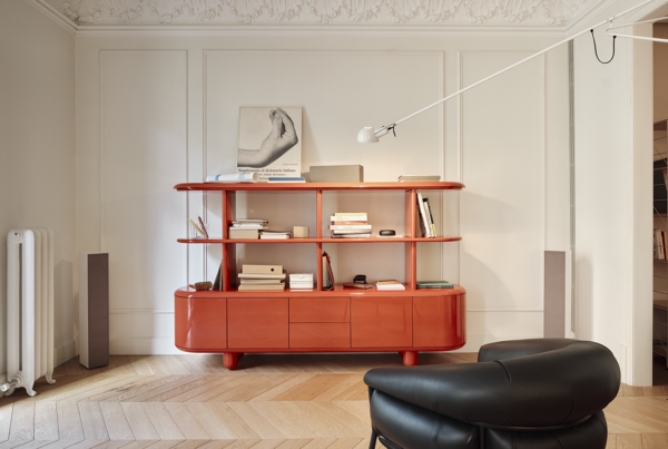 Maison Sarayan développe un vocabulaire formel identifiable, fondé sur des volumes pleins, des proportions franches et une couleur utilisée comme élément de construction. Le mobilier fonctionne par masses et équilibres, avec une présence forte dans l’espace, pensée pour structurer un intérieur plutôt que l’accessoiriser. Le geste artisanal soutient ici une écriture décorative contemporaine, lisible et affirmée.