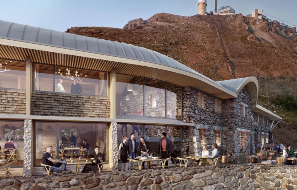 Enfin, dans les Pyrénées, l’Hôtellerie des Laquets, reliée au Pic du Midi par téléphérique, deviendra le plus haut hôtel de France à 2 620 m d’altitude. Une prouesse d’intégration et un rêve pour amateurs de sommets enneigés.
