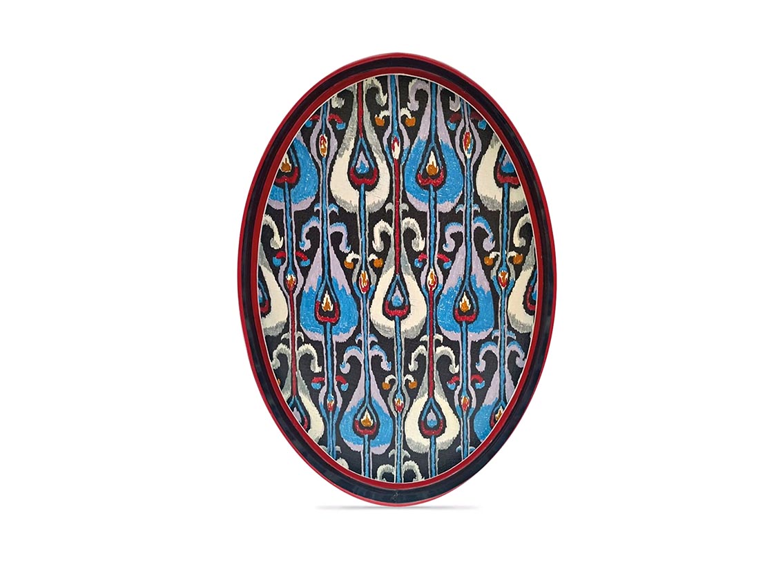 Ovale et sculptural, cet ottoman habillé d’ikat peint à la main brouille les frontières entre objet et pièce d’art. Le fer dessine la structure, la couleur impose le rythme, le motif raconte l’héritage revisité. Une présence forte, graphique et nomade, pensée pour signer un intérieur d’un geste audacieux, entre tradition réinterprétée et désir contemporain.