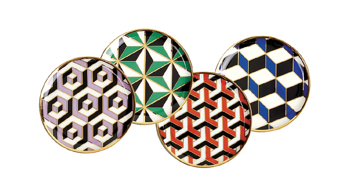 Graphiques et résolument Art déco, ces petites assiettes Jonathan Adler s’inscrivent dans l’ADN de la marque chez Rouge ivoire: une géométrie forte, des motifs répétitifs inspirés du modernisme, et une palette de couleurs franches. Souvent décrites comme bold, playful et modern, elles mêlent références déco des années 30 et esprit pop contemporain.