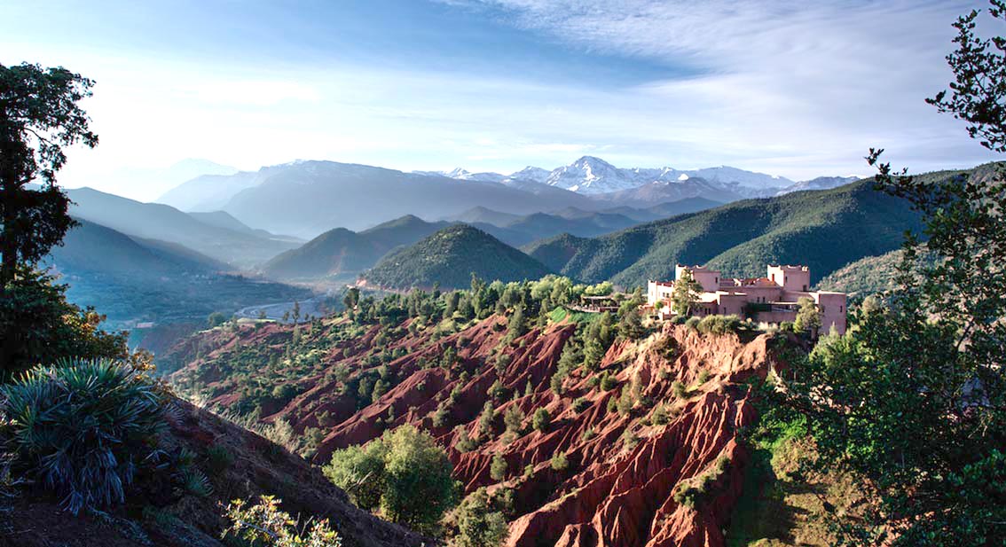 Perchée dans les montagnes, la Kasbah Tamadot mêle élégance et esprit berbère. Entre jardins en terrasses, vues panoramiques et intérieurs raffinés, le lieu offre une lecture contemporaine du luxe, ancrée dans son environnement.