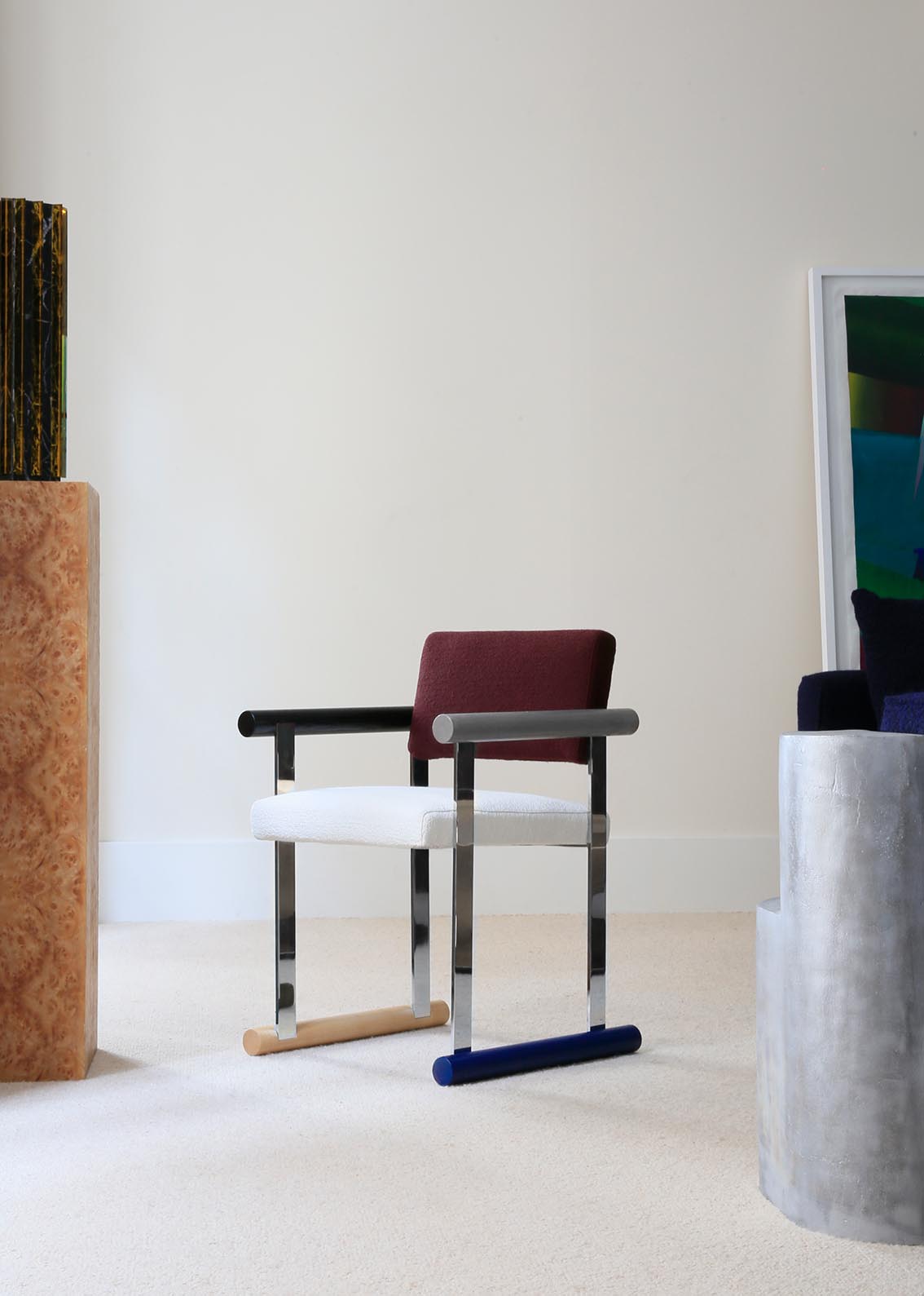 Éditée en version spéciale du modèle Pause pour La Chance, la chaise PLAY se distingue par ses accoudoirs en bois, proposés en quatre teintes sélectionnées et produites à Paris. Elle est habillée d’un tissu Kvadrat, référence internationale en matière de textiles haut de gamme. Une alliance de savoir-faire, d’exigence matérielle et de modernité formelle qui reflète l’ADN de la maison.