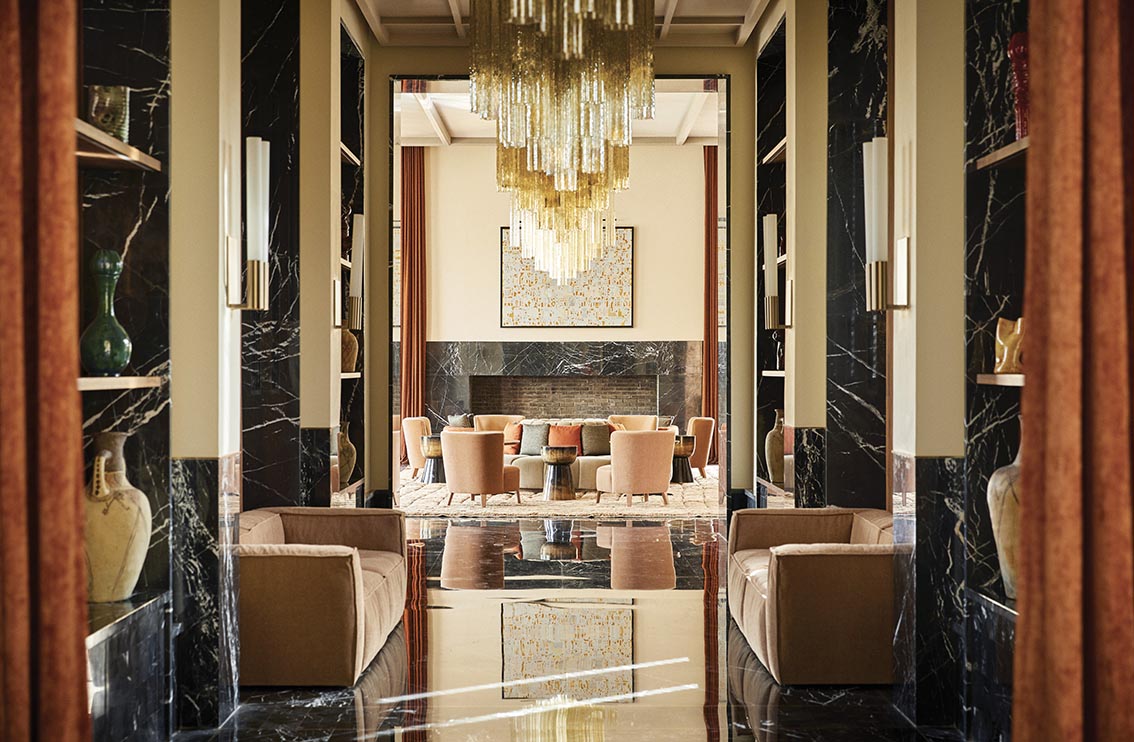 Dès l’entrée, le Park Hyatt Marrakech captive par ses volumes majestueux et ses plafonds à 7,50 mètres. Marbre de Khenifra, moucharabiehs sculptés et lignes Art déco créent un équilibre subtil entre artisanat marocain et design contemporain. Chaque espace, baigné de lumière et ouvert sur des jardins luxuriants, invite à la contemplation et à l’émerveillement.