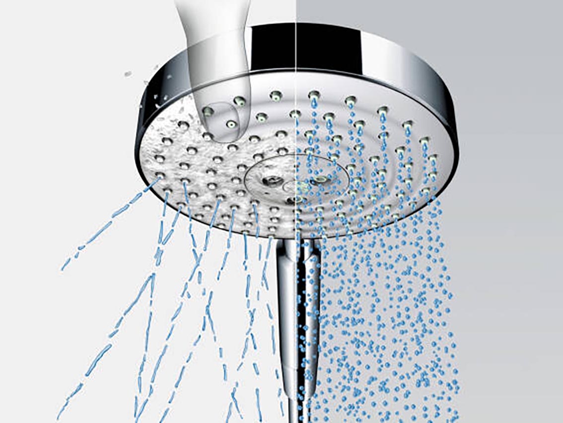- La technologie QuickClean permet d’éliminer facilement le calcaire et les dépôts sur douchettes, têtes de douche ou mitigeurs grâce à des buses en silicone flexibles.