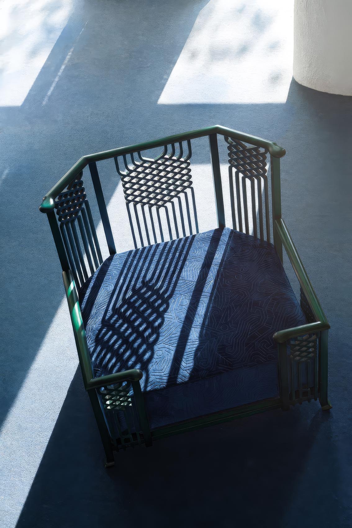Le bleu s’impose ici comme une matière à part entière.