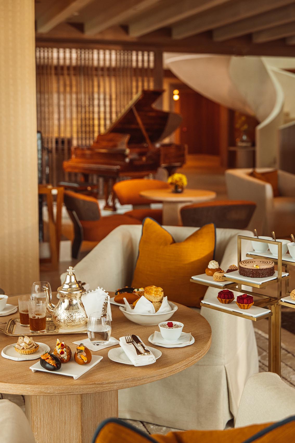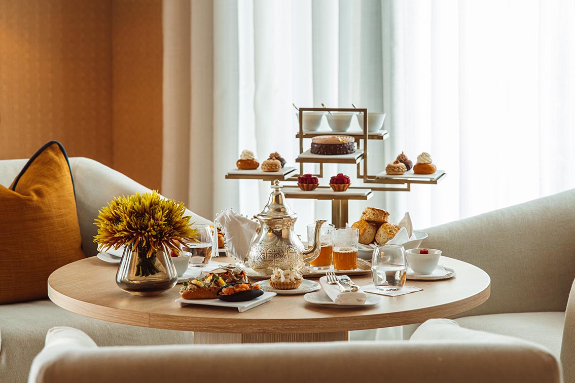 Et quand vient l’après-midi, la Merienda (450 MAD) invite à un tea time à la marocaine, tout en finesse : navettes salées, Paris-Brest, tartelettes pistache-framboise et thés parfumés… un instant suspendu entre douceur et raffinement.