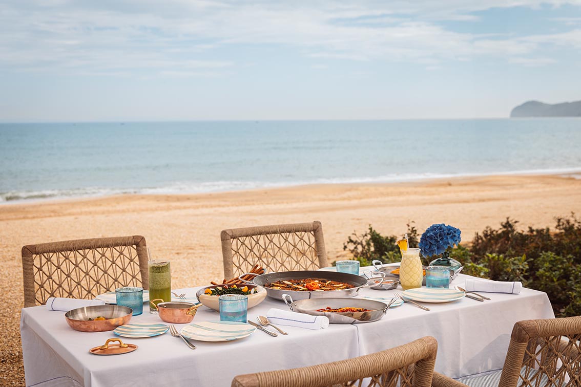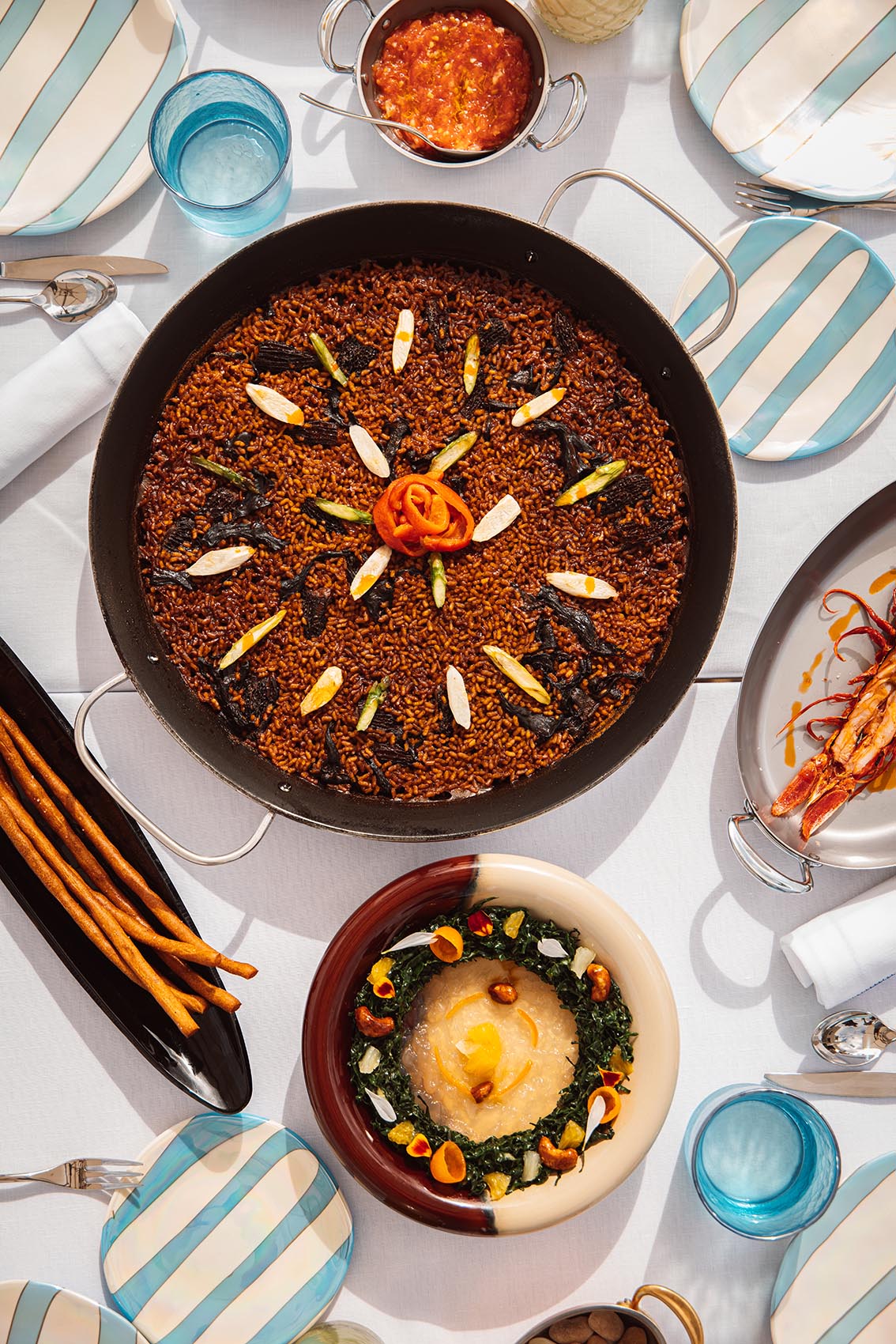 Chaque week-end, le Chef Quique Dacosta orchestre la Paella du week-end (650 MAD), précédée d’un gaspacho de saison et suivie d’une crème aux jaunes d’œufs. Un rituel solaire à partager, face à la mer.