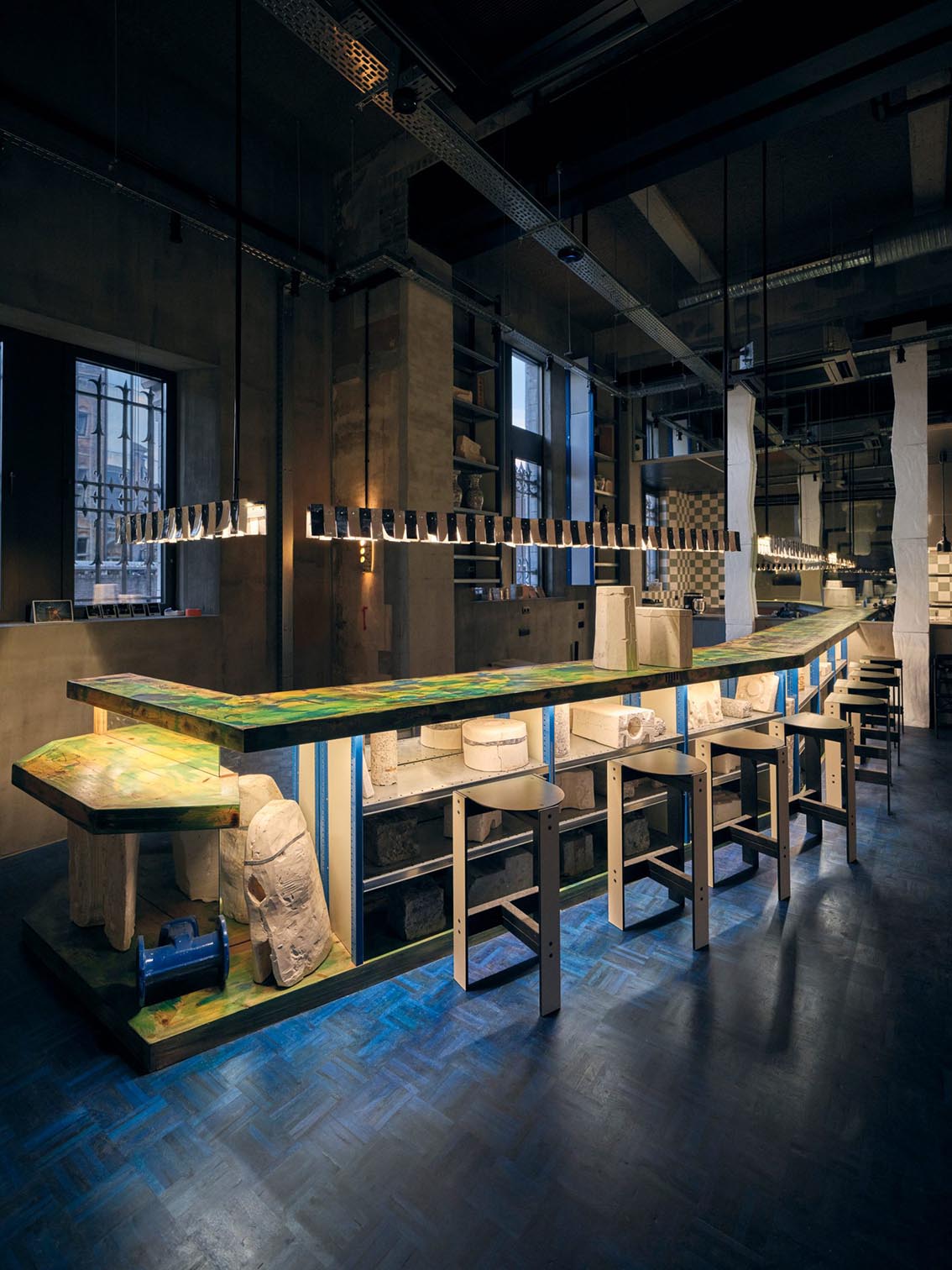 Le projet met également en avant le travail de la matière. Bois, métal, textiles ou éléments recyclés dialoguent dans des compositions souvent inattendues, créant des espaces vivants et sensoriels.