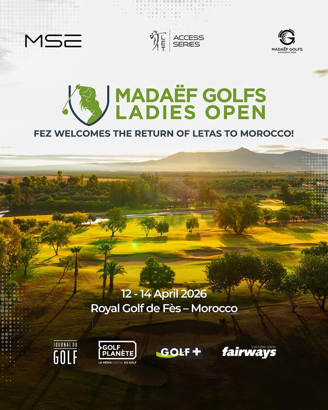 Du 12 au 14 avril 2026, le Royal Golf de Fès accueillera le Madaëf Golfs Ladies Open, étape du Ladies European Tour Access Series (LETAS). Plus de 100 joueuses professionnelles issues d’une trentaine de nationalités s’affronteront en stroke play pour un prize money de 50 000 €, aux côtés de talents marocains.