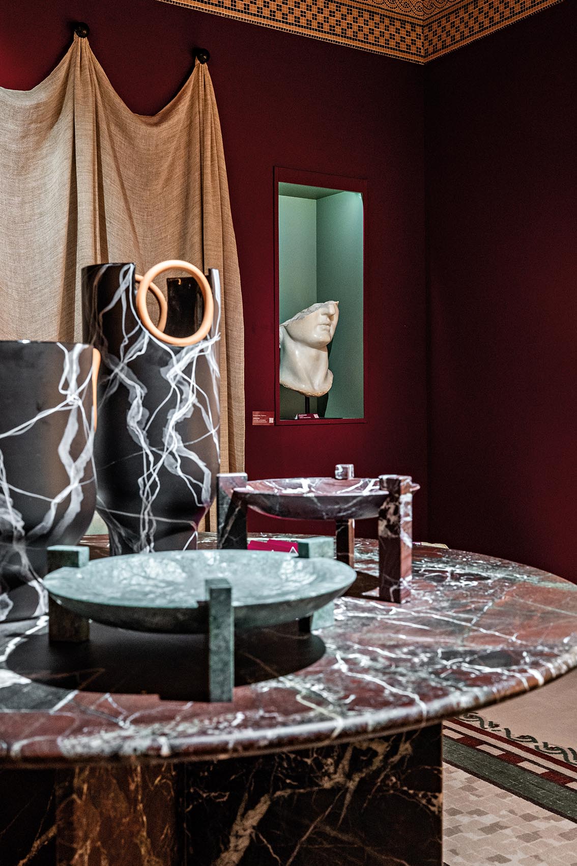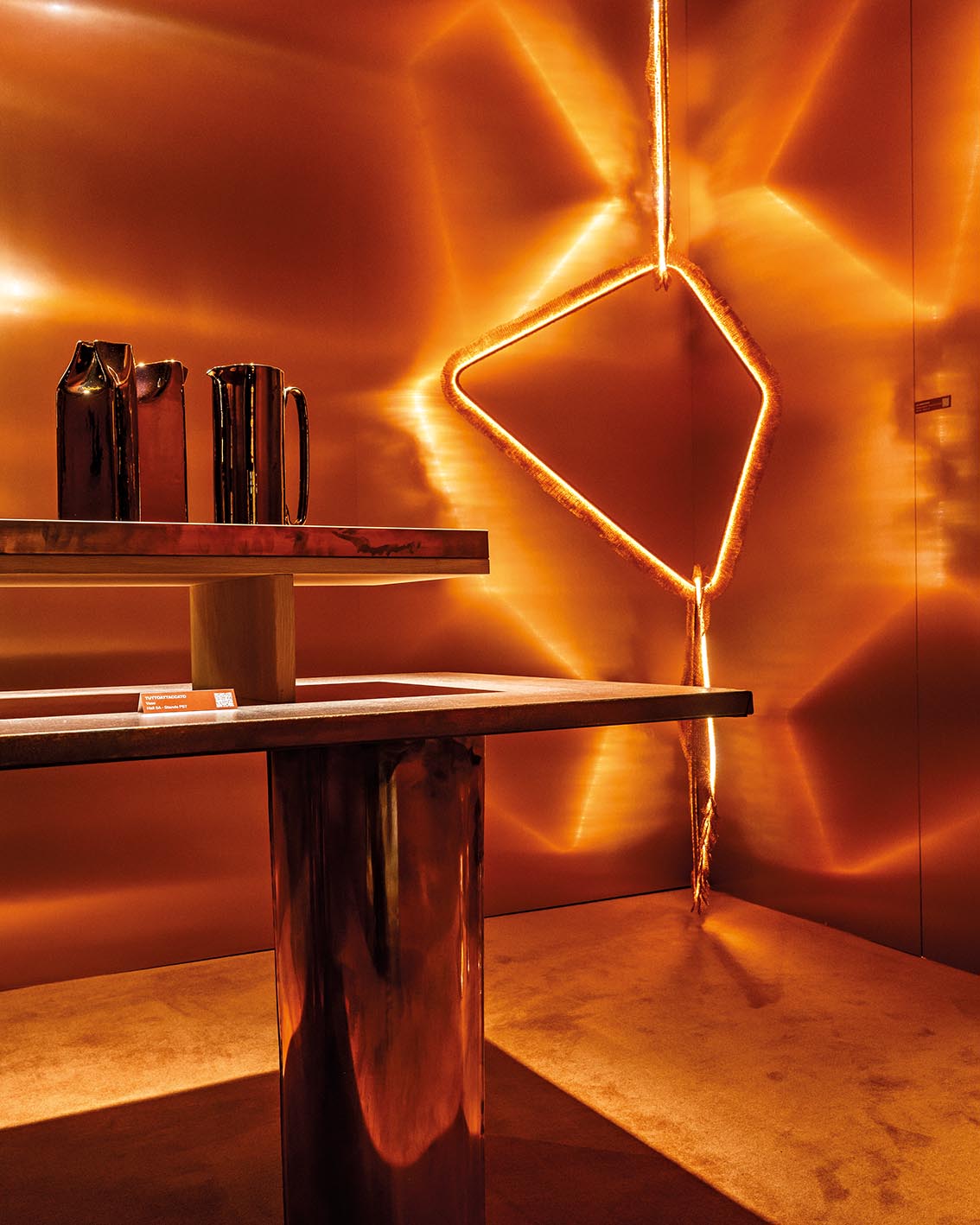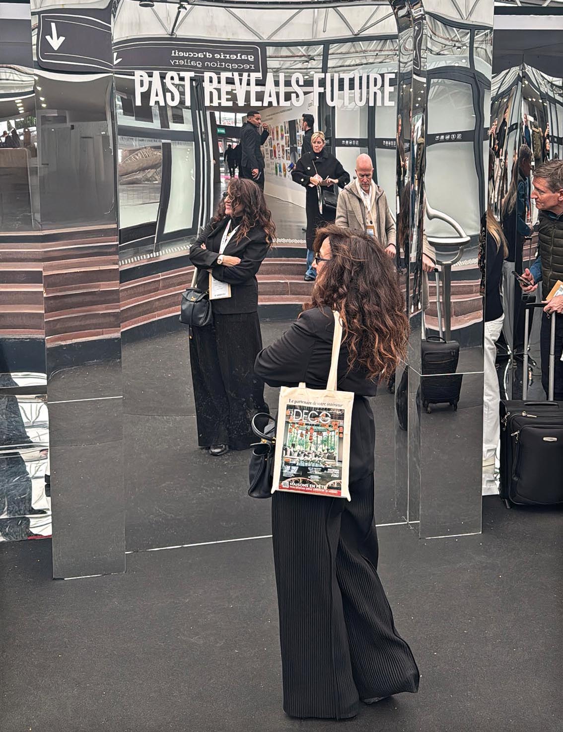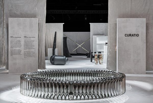 Cette scénographie futuriste se présente comme une capsule intemporelle. Elle exprime une énergie où l’héritage nourrit l’expérimentation et évite toute nostalgie figée. Les gestes et les matériaux retrouvent leur lenteur, se laissent contaminer par les technologies et génèrent de nouvelles hybridations. Le créateur mis à l’honneur transforme l’existant et rédige son manifeste en réutilisant ce qui l’entoure. Ses installations superposent objets trouvés et surfaces réfléchissantes afin que chaque élément reflète le zeitgeist et la mémoire collective. Ici, l’objet devient prétexte à conversation et invitation à participer ; le salon tout entier propose un voyage entre mémoire, matière et nouveaux formats.