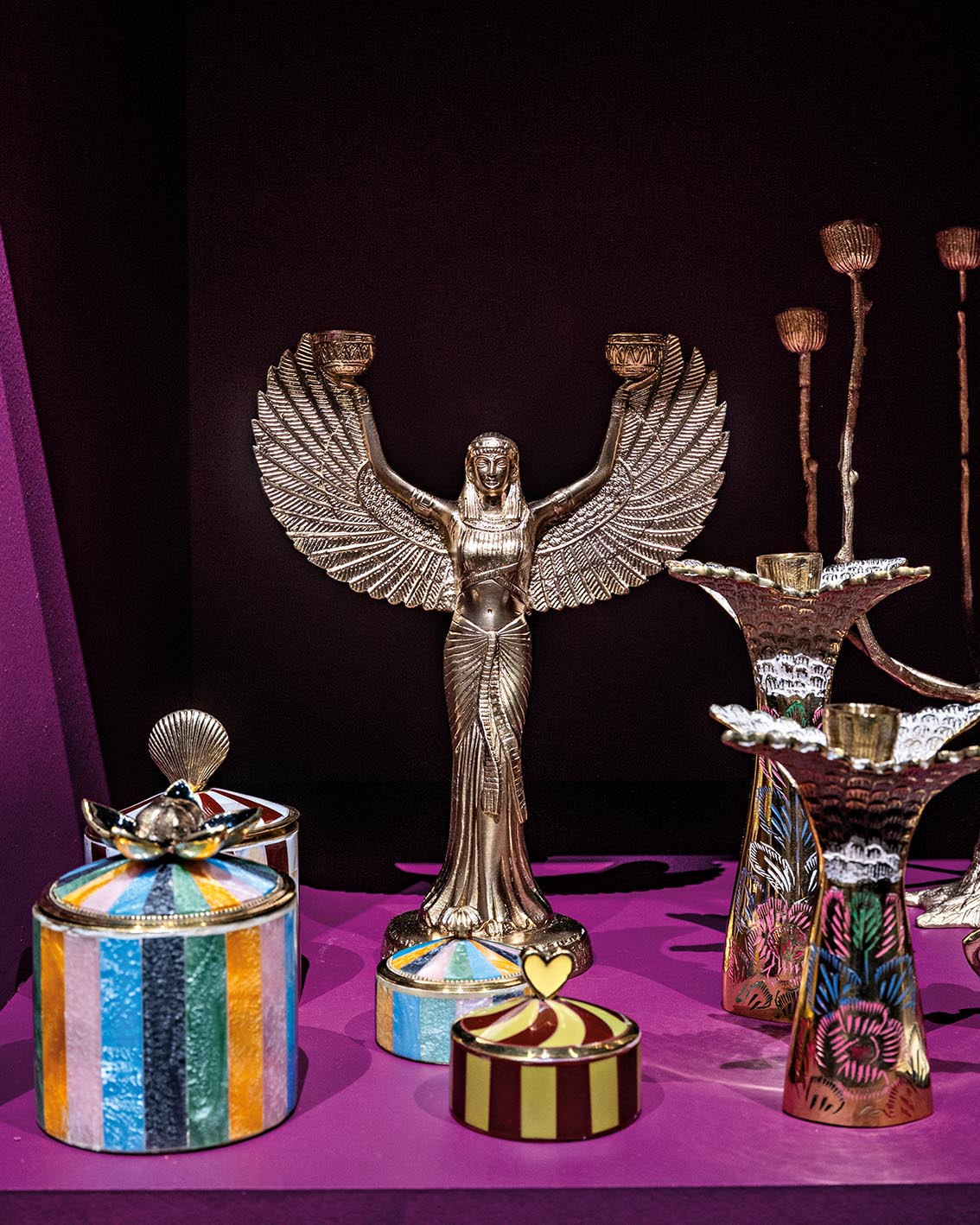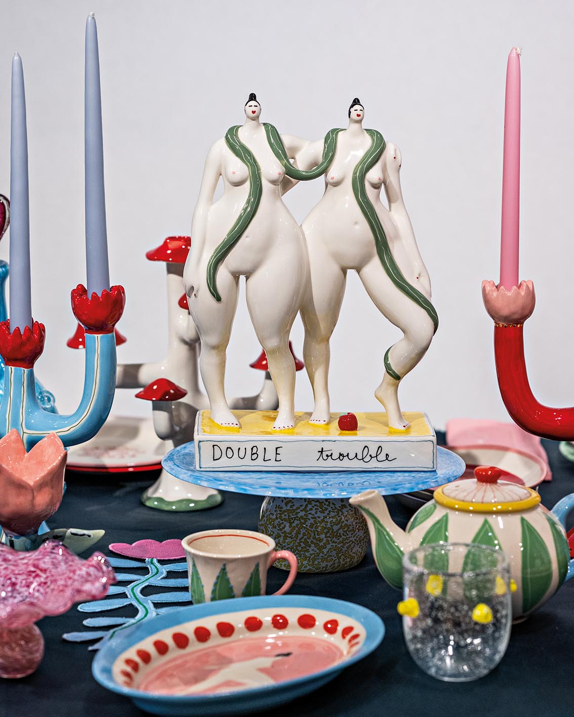 En parallèle, les objets décoratifs et les pièces issues de l’univers Gift & Play affirment une approche plus expressive. Sculptures, céramiques et accessoires développent des langages visuels assumés, où la couleur, la figure et le récit occupent une place centrale. Ces créations s’adressent autant au marché du cadeau qu’aux projets de décoration à forte personnalité.