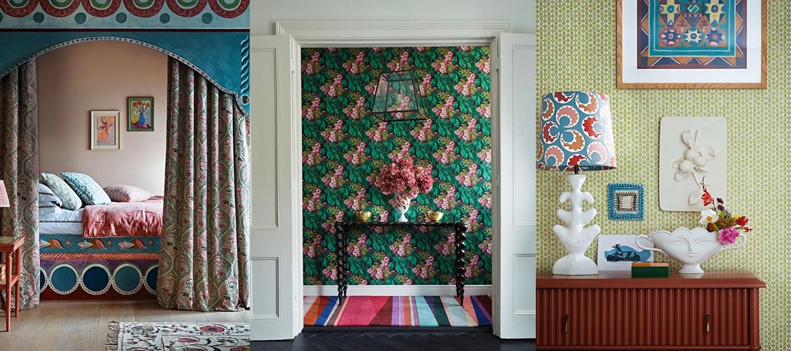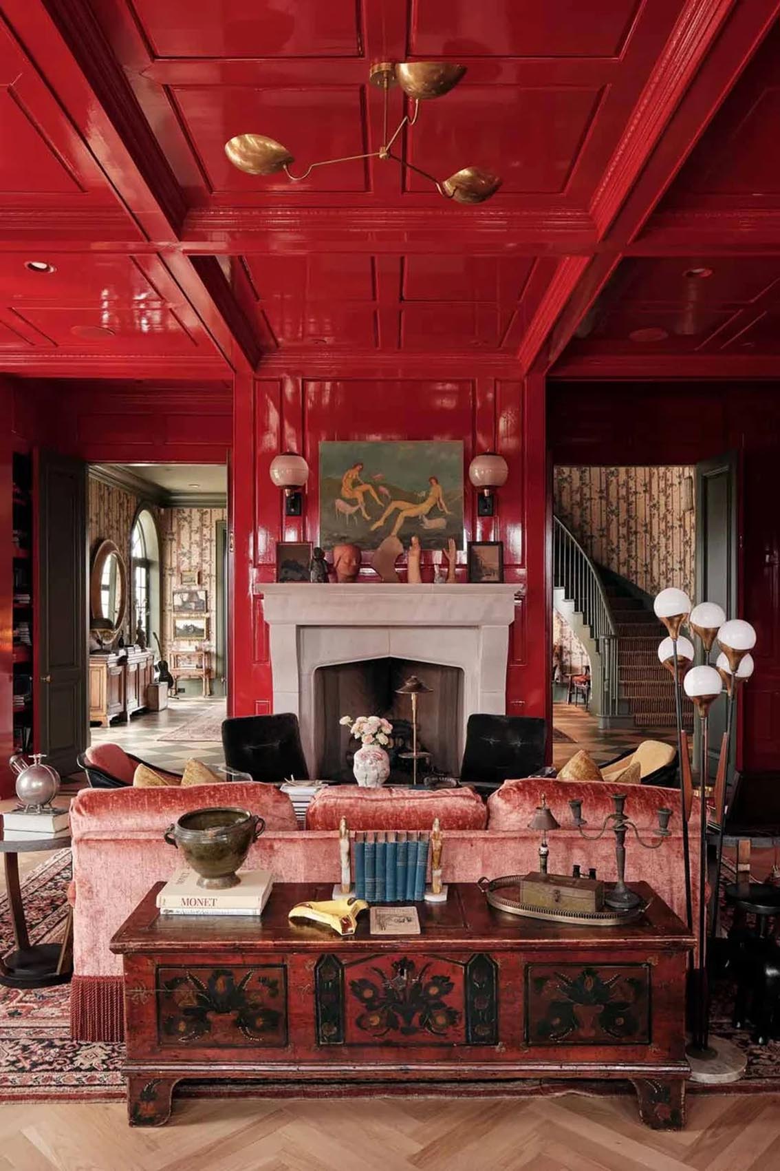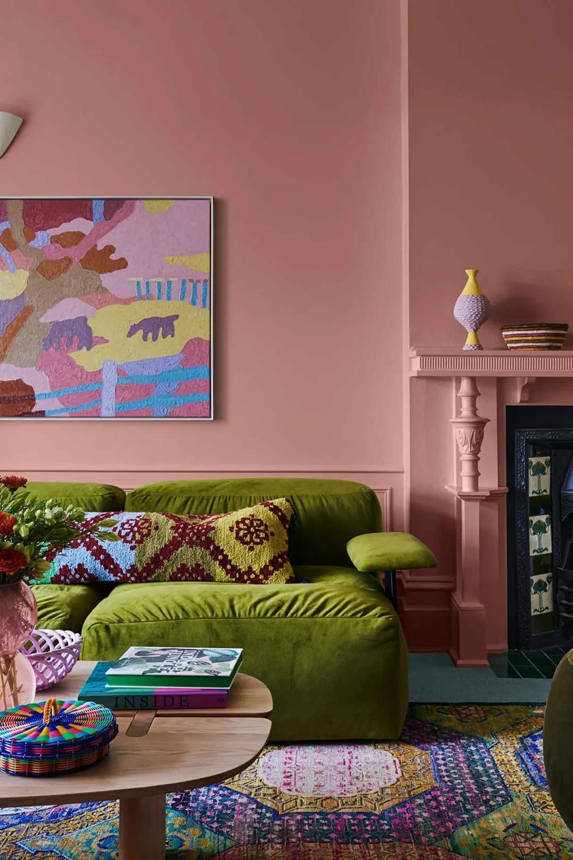 Le maximalisme adore les teintes profondes et affirmées : vert émeraude, terracotta, bleu nuit, bordeaux…