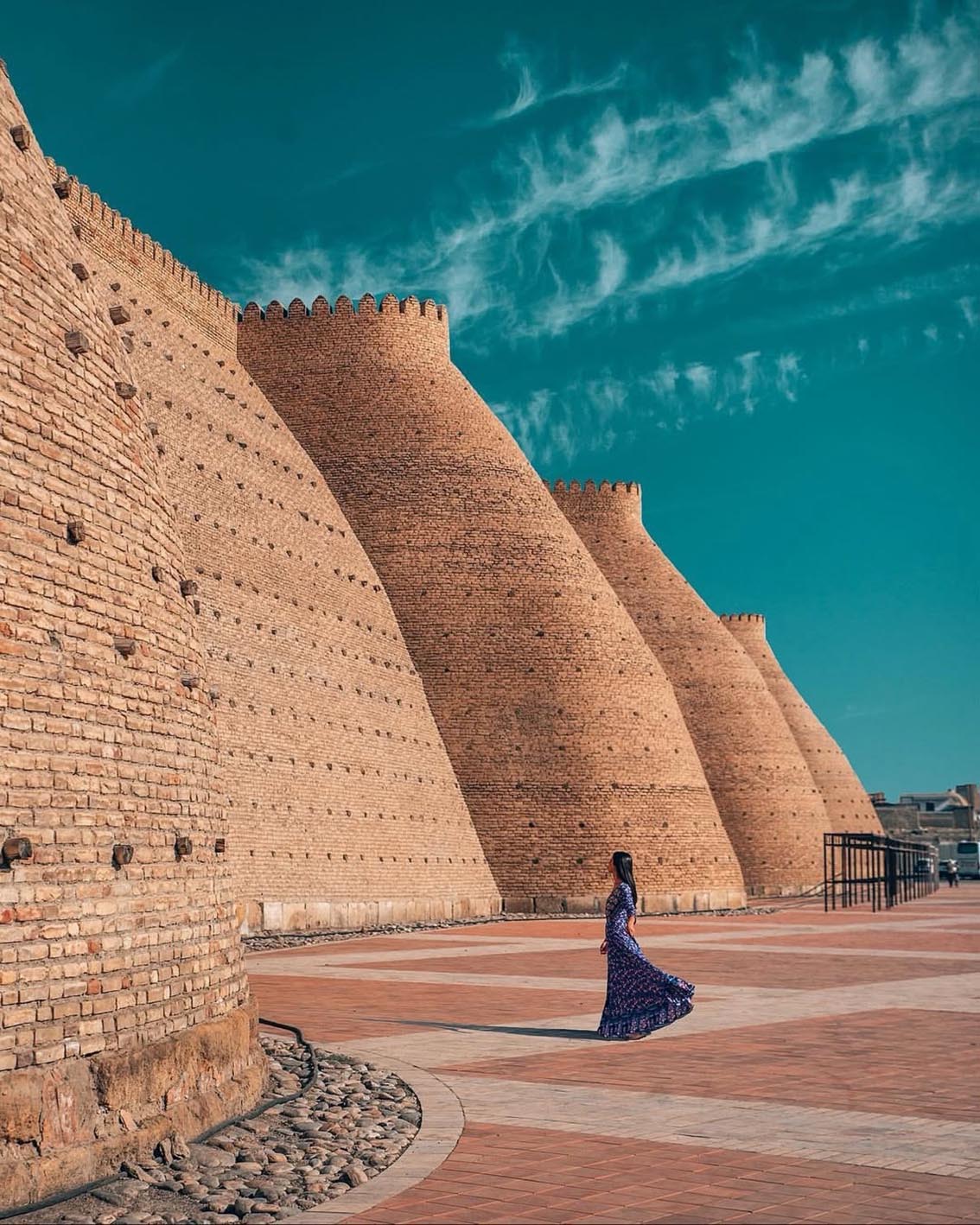 Plus à l’ouest, Khiva semble figée dans le temps. Derrière ses remparts, la ville fortifiée déploie un ensemble d’édifices aux proportions harmonieuses, où les jeux d’ombre et de lumière sculptent les volumes au fil de la journée.