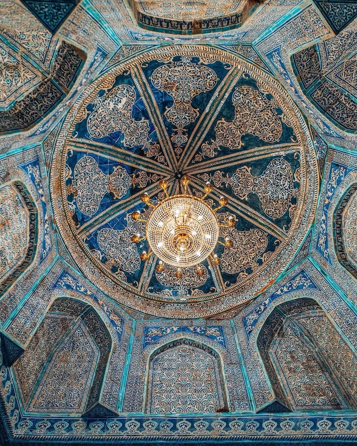 Ce qui frappe, au-delà de la monumentalité, c’est le rapport à la matière : briques cuites au soleil, céramiques vernissées, bois sculpté, mosaïques aux compositions mathématiques. L’ornement n’est jamais décoratif au sens superficiel — il structure l’espace, guide le regard et rythme la marche.