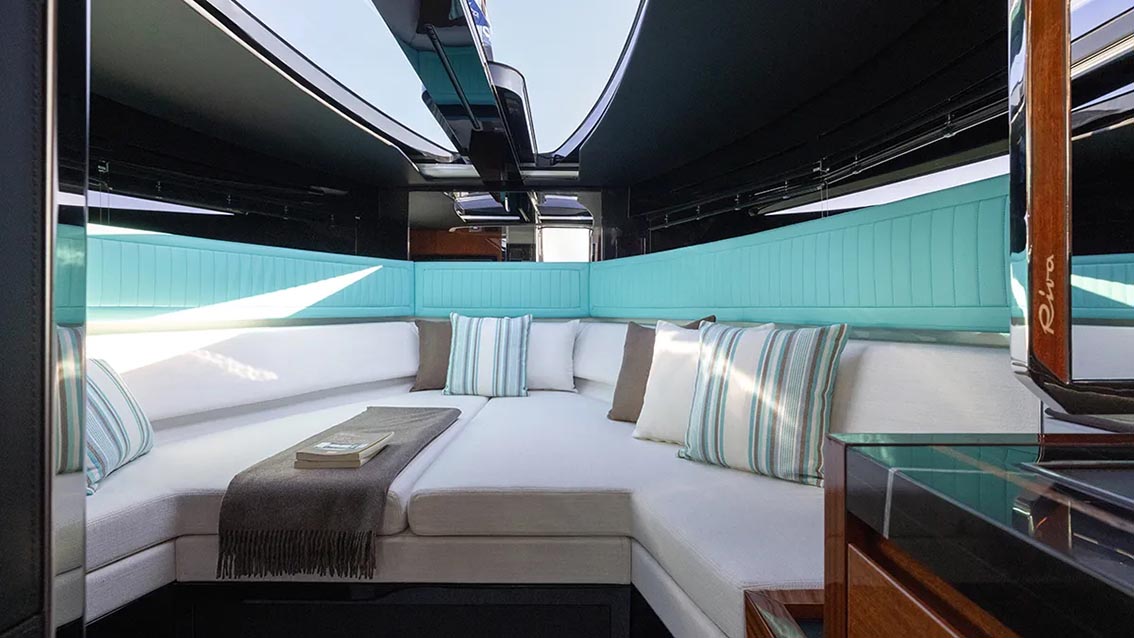 Motorisé par deux Volvo Penta D6 440, le Riva Cento affiche 40 nœuds en vitesse de pointe. Inutile d’en faire plus : la performance est là, parfaitement dosée.