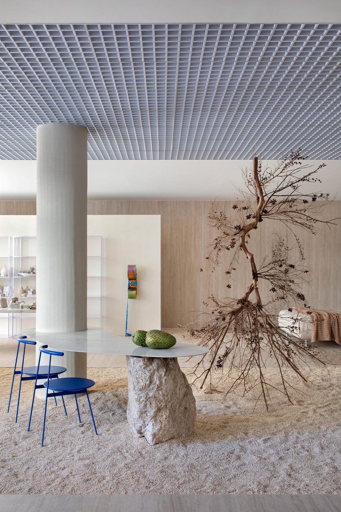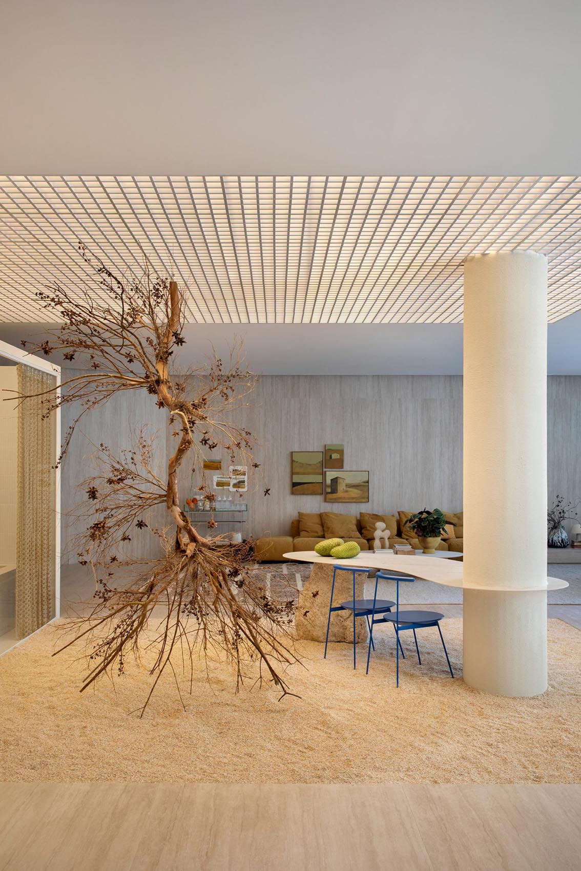 Entre installation artistique et projet architectural, Caminhos Portinari incarne une approche contemporaine du design intérieur, où scénographie, matière et circulation se mêlent pour créer une expérience immersive.