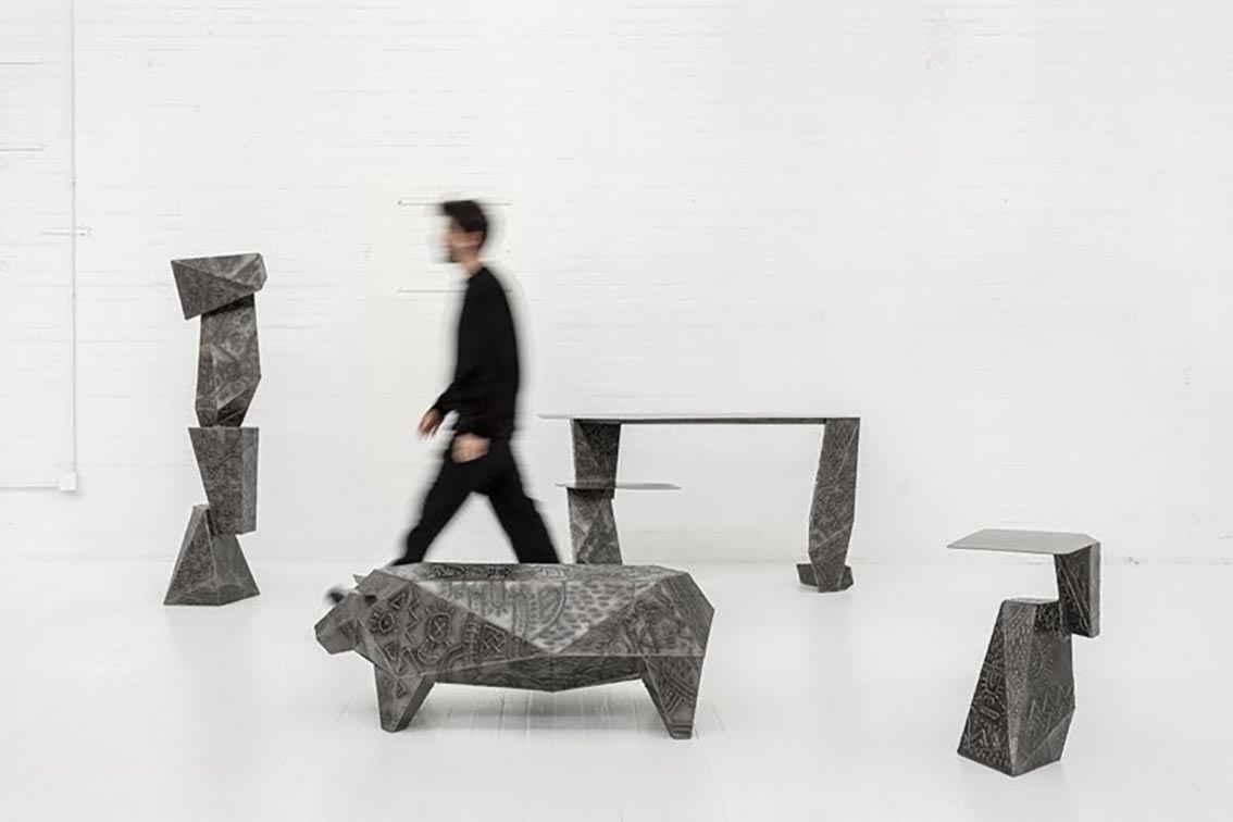 À travers cette collection, le designer revendique une approche instinctive et expressive : « Je voulais simuler ce que font les tatoueurs en dessinant sur une pièce de mobilier, en la rendant narrative et durable. Et en même temps offrir une approche nouvelle et fraîche d’une technique intemporelle comme la soudure. »