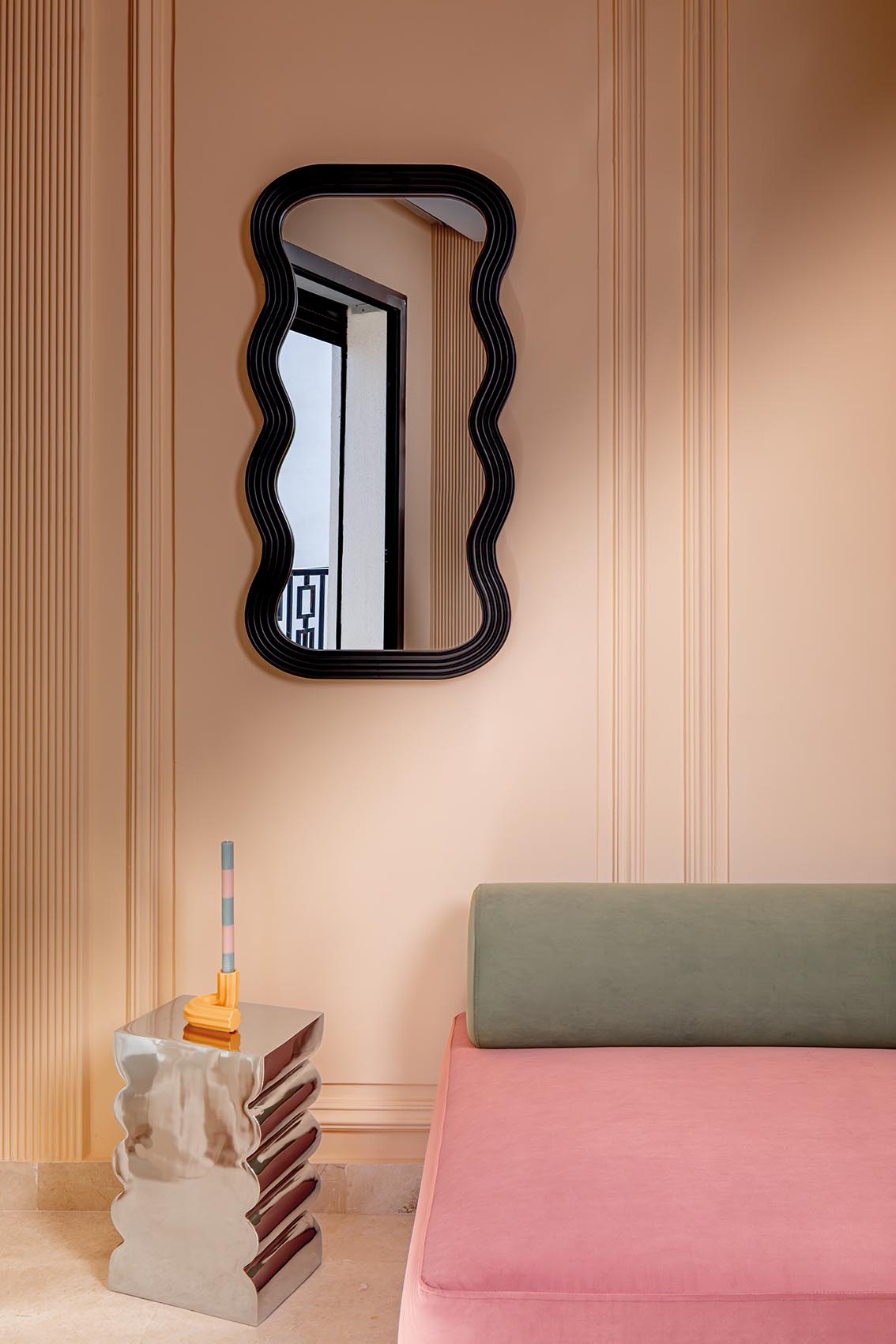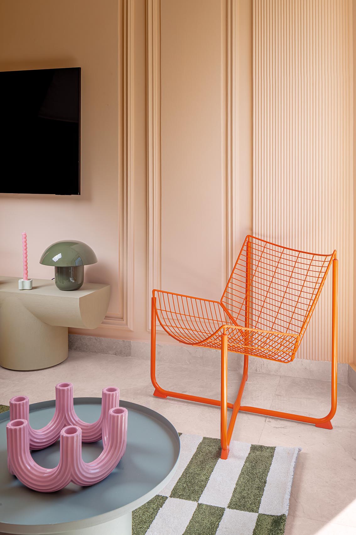ous sommes partis d’un principe simple : optimiser un appartement destiné à la location tout en lui donnant une identité forte et lisible. La palette s’est imposée d’elle-même. Le rose et le vert créent une dynamique contemporaine, tandis que les matières apportent de la profondeur. L’idée était de rendre l’espace fonctionnel, agréable, sans perdre en caractère.