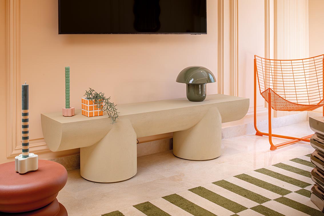 Je suis attentive à ce que les matières expriment une sensation juste. Le velours, par exemple, apporte de la douceur et absorbe la lumière ; les surfaces dures, comme le terrazzo ou certains bois, donnent du rythme. C’est cette alternance qui construit l’identité du lieu.