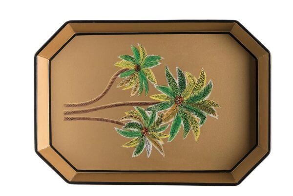 Un souffle exotique chez Rouge Ivoire traverse ce plateau rectangulaire signé Les Ottomans. Entièrement peint à la main, il marie l’éclat doré des palmes à…