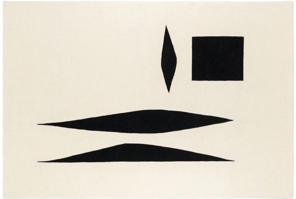 Le tapis signé Maison Dada explore une écriture graphique réduite à l’essentiel. Les formes noires, placées sur un fond clair, se lisent comme des signes…