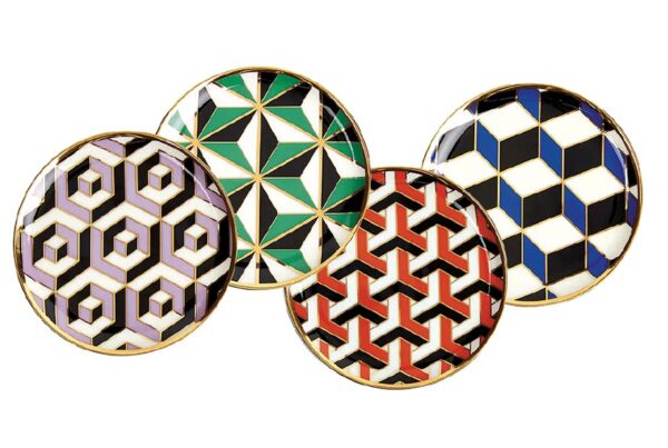 Graphiques et résolument Art déco, ces petites assiettes Jonathan Adler s’inscrivent dans l’ADN de la marque chez Rouge ivoire: une géométrie forte, des motifs répétitifs…