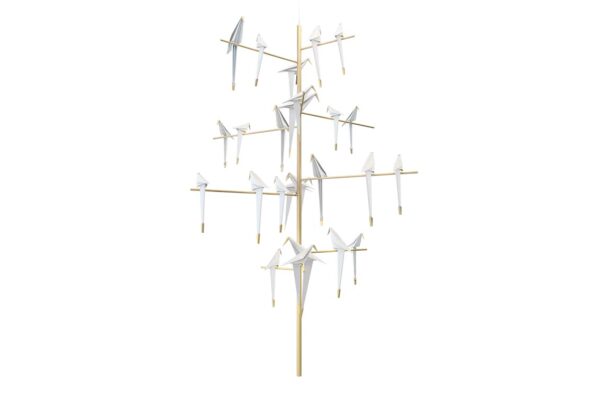 Inspirée par le mouvement des oiseaux, cette lampe Moooi compose une nuée graphique faite de lignes fines et de silhouettes géométriques. @hwm_maroc_interiors_offices