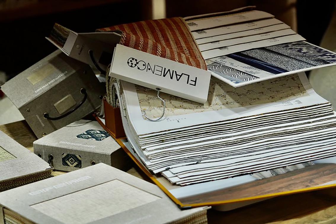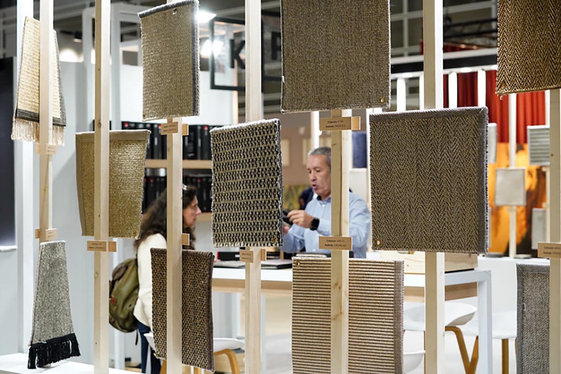 La matière était au cœur des échanges. Les visiteurs ont pu découvrir un éventail d’échantillons de tapis, moquettes, tissus et papiers peints, accrochés avec soin sur des structures en bois clair. Chaque carré textile dévoilait une technique, un toucher, une intention. Parmi les grands noms présents, des maisons comme Flamenco ou KP Alfombras ont su séduire les professionnels en quête de solutions haut de gamme.