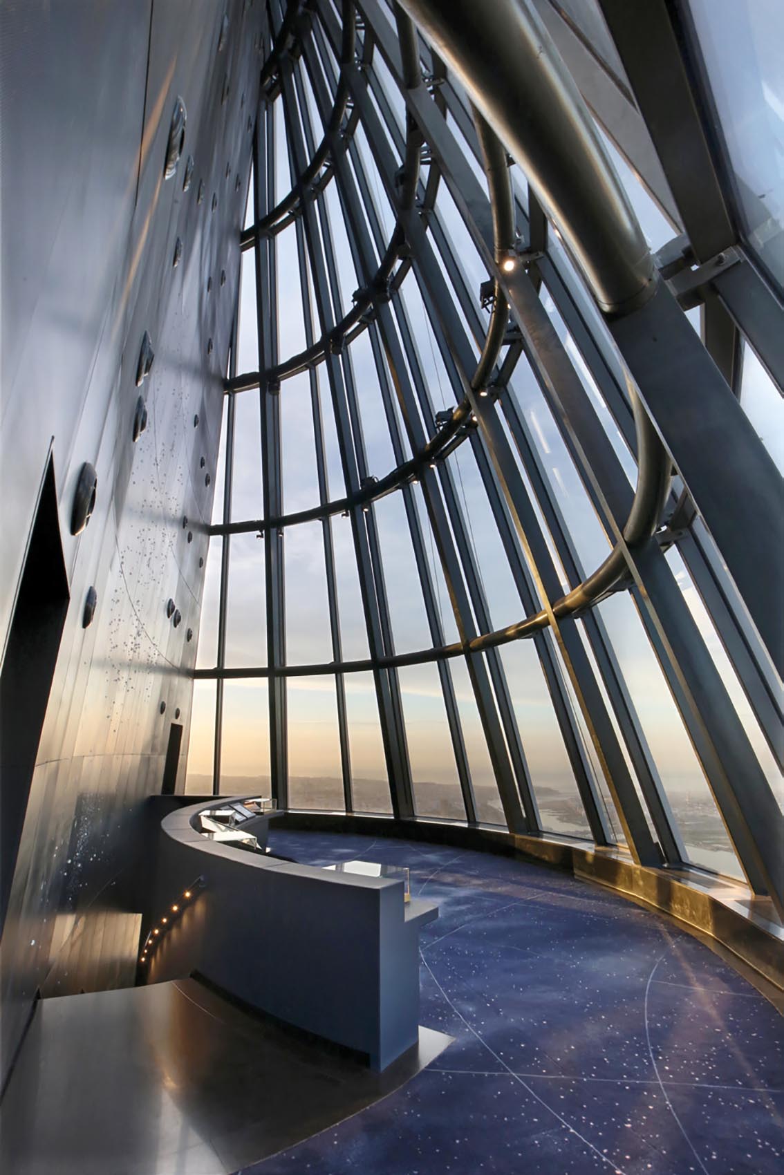 À l’intérieur, la tour se découvre comme un parcours. Plus de 7 000 œuvres et pièces décoratives, réalisées par plus de 140 artistes, ponctuent les espaces, transformant l’architecture en véritable expérience culturelle. Chaque matière, chaque texture, chaque lumière participe à une mise en scène subtile du patrimoine marocain réinterprété.