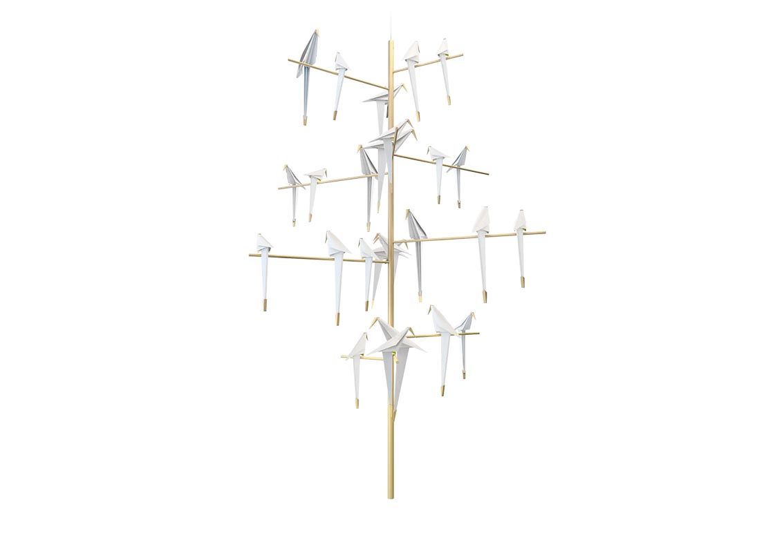 Inspirée par le mouvement des oiseaux, cette lampe Moooi compose une nuée graphique faite de lignes fines et de silhouettes géométriques. @hwm_maroc_interiors_offices