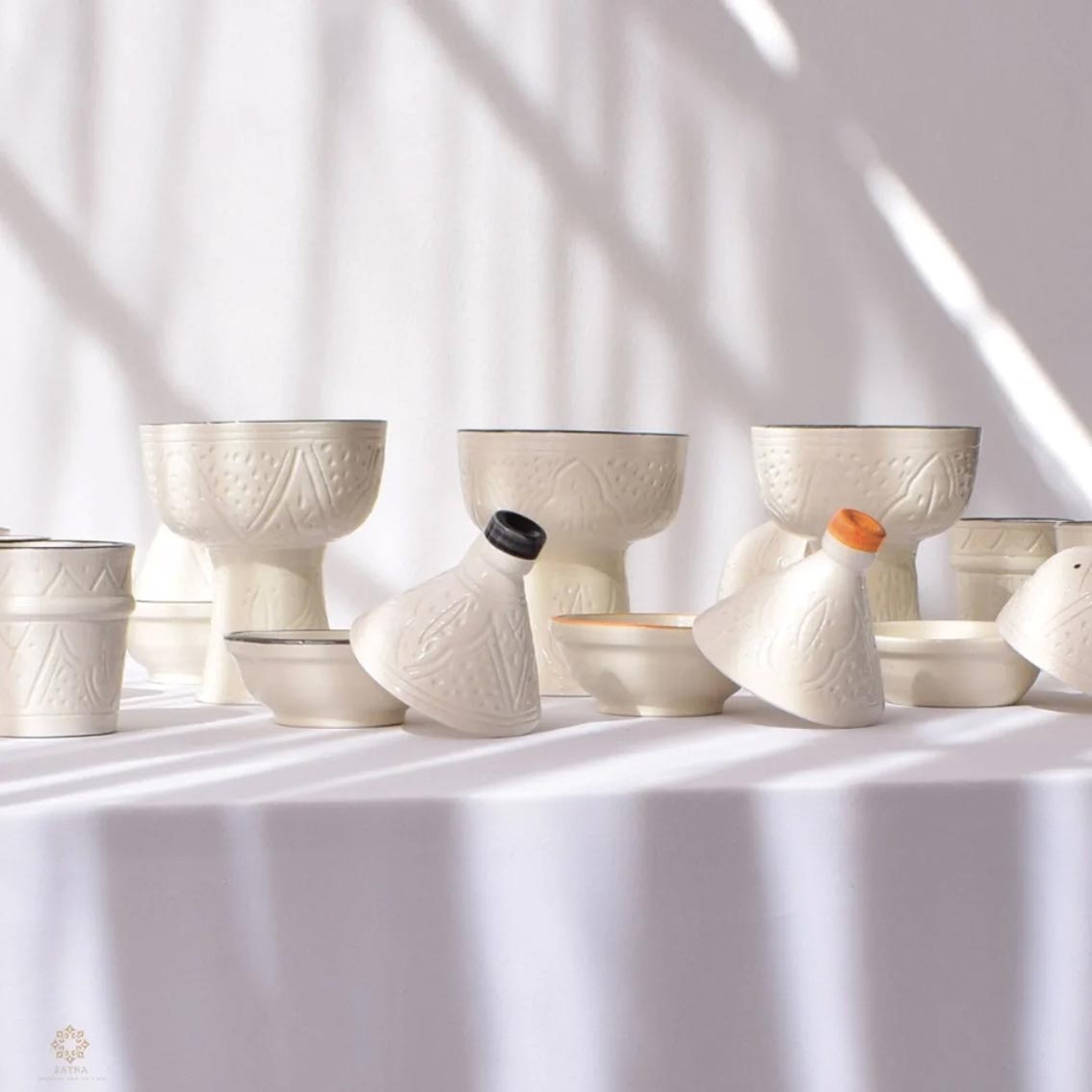 ZAYNA POTTERY conçoit la céramique comme un champ d’expérimentation formelle. Les volumes, souvent fragmentés ou désaxés, interrogent la notion d’usage et déplacent le regard vers une grammaire sculpturale. Ici, la terre cuite se fait syntaxe critique : elle refuse l’homogène, assume l’asymétrie, valorise l’accident comme signe esthétique. L’objet cesse d’être utilitaire pour devenir question : que contient un contenant lorsqu’il libère son sens de la fonction ?