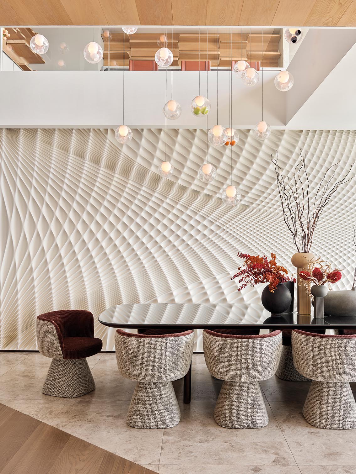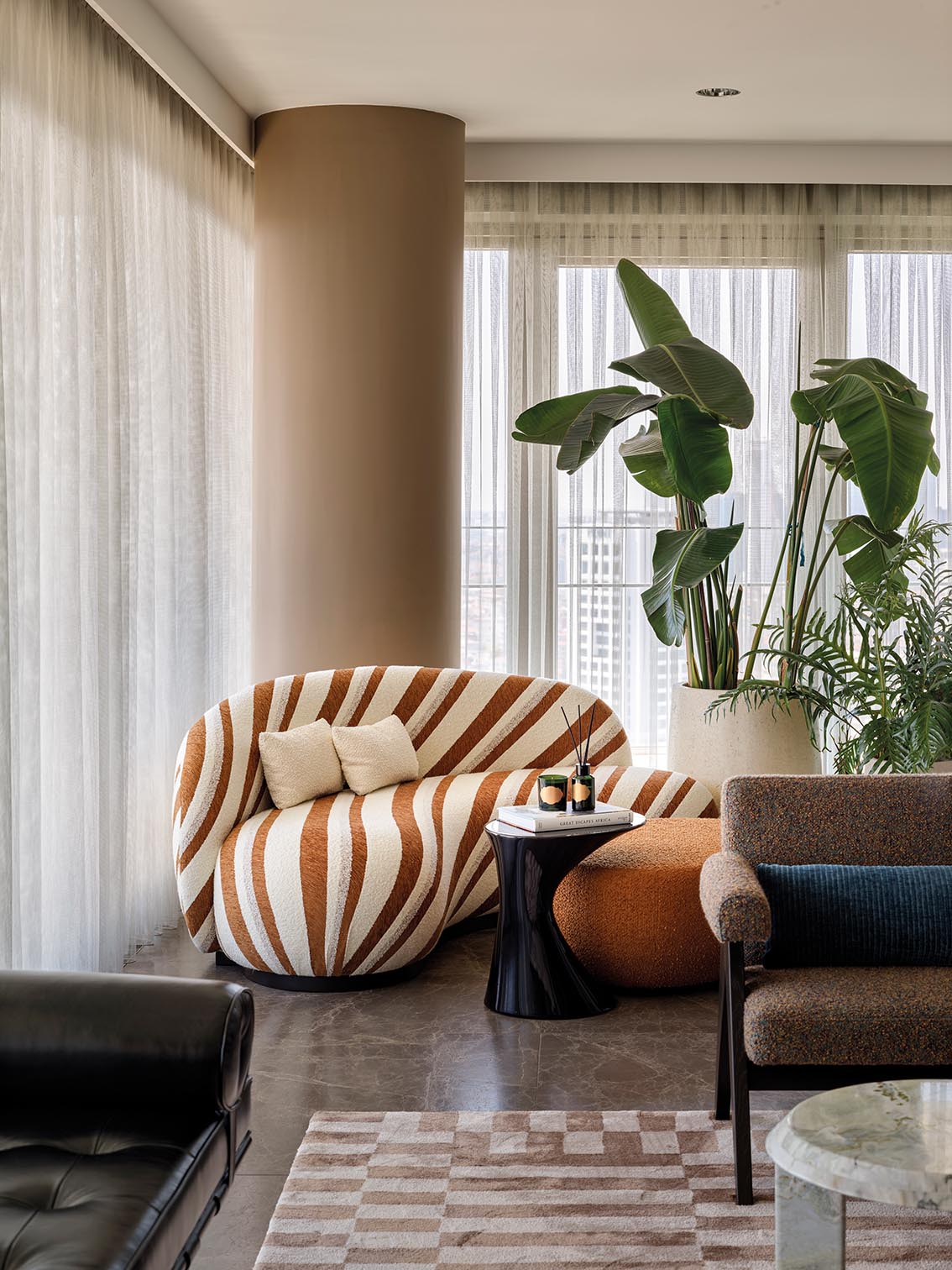 Au cœur de cette démarche, la notion de composition prend une dimension globale. Le projet se pense comme un ensemble continu, où mobilier, textile, œuvre et végétal participe à un récit unique, conçu spécifiquement pour ses habitants. Cette approche exclut toute répétition formelle ou signature figée.